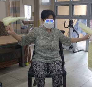 어르신들과 민요의 구성진 리듬에 맞춰 한삼을 가지고 율동을 했어요~