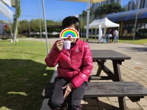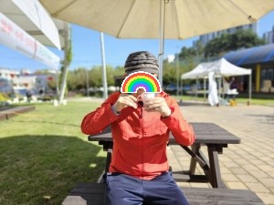 일찍 도착해서 따사로운 햇살을 맞으며 벤치에 앉아 여유롭게 커피를 마셨어요.![]()
