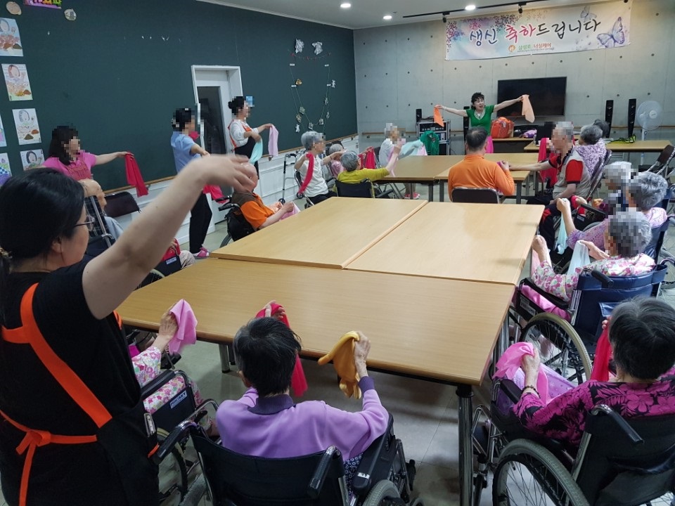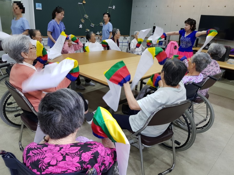 다양한 도구를 이용하여 신나는 음악에 맞춰 열심히 즐기시는 우리 어르신들~^^