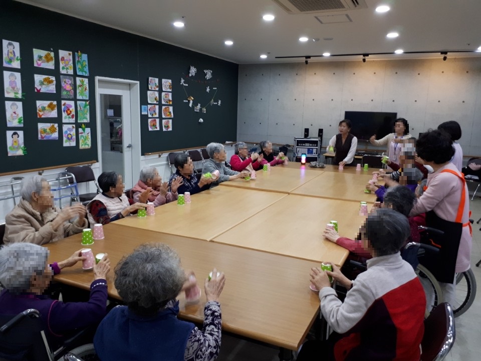 어르신들에게 생소 했을 컵타... 나중에는 적응이 되셨는지 박자를 맞춰 잘 하셨어요 ㅎㅎ