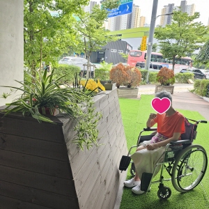 어르신들과 1층 야외로 산책 다녀왔습니다.