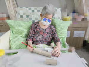 간단한 체조를 따라 하며 휴지심을 나무젓가락에 끼워 옮기는 신체활동으로 정확한 근육 조절과 집중력에 도움을 주는 수업을 했어요.