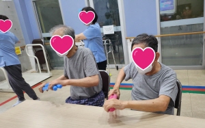 B그룹은 스티로폼 막대로 신체를 두드리고 손으로 잡아보며 일상생활 움직임에 도움이 되는 체조를 했어요.